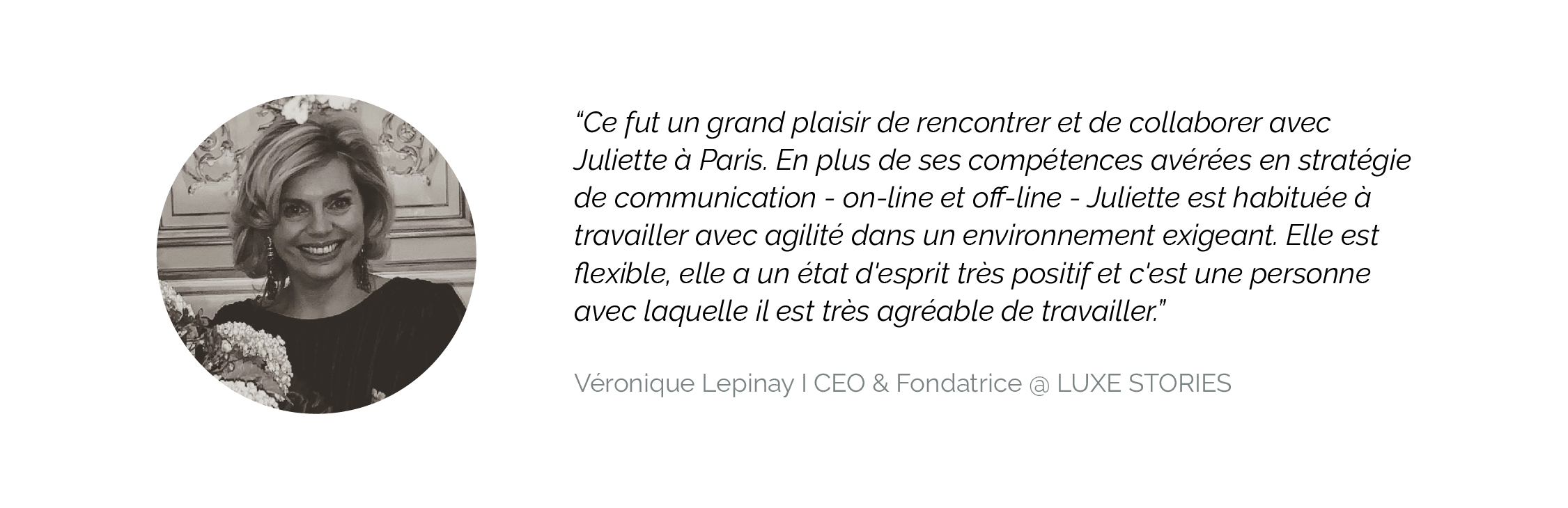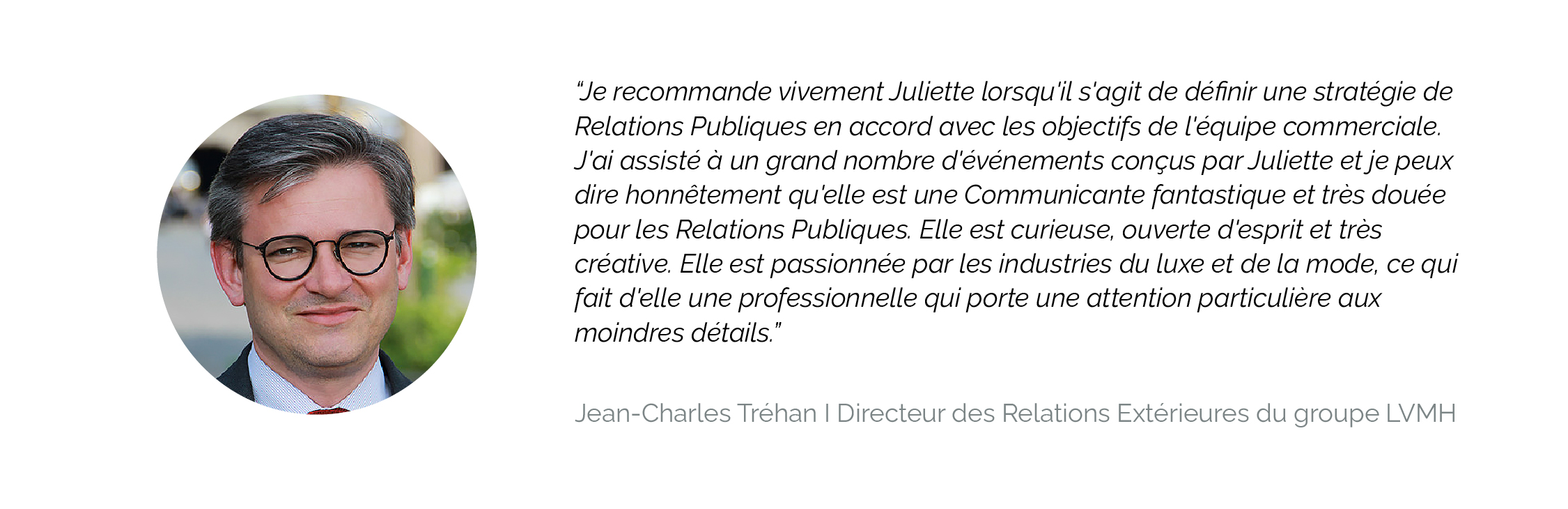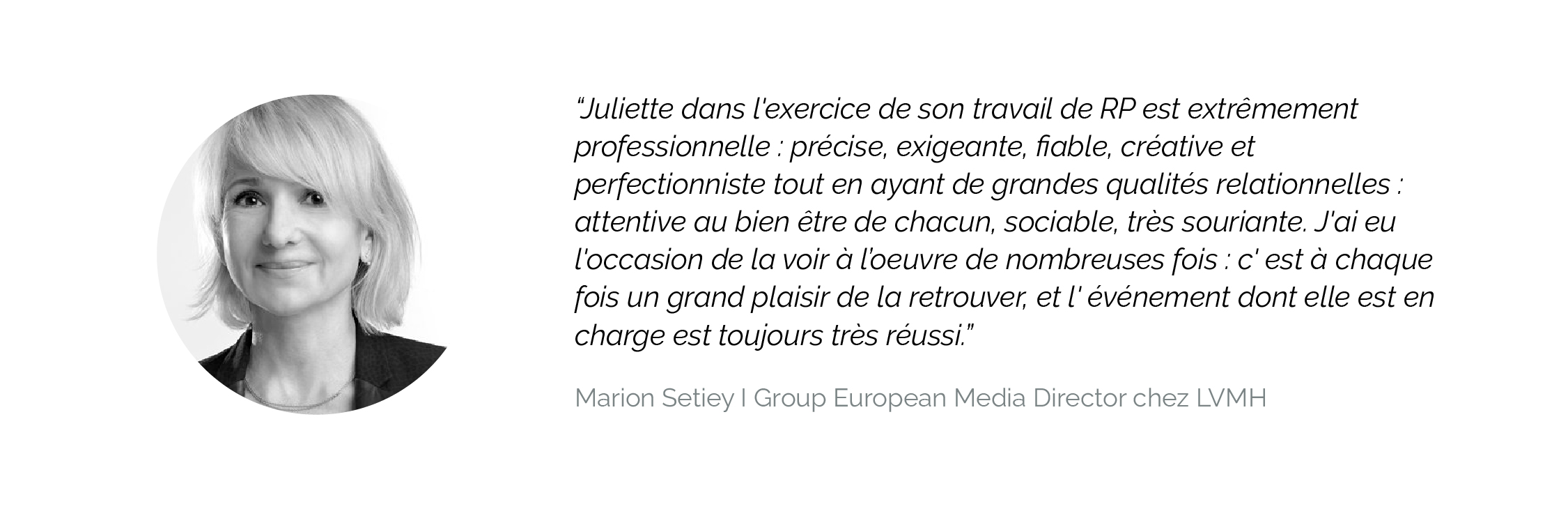 Juliette Granon est une agence de communication spécialisée dans le Conseil, les Relations Publiques et l’internationalisation de marques, dans l’univers du Luxe. Forts de nos expériences de communicants et créatifs, nous mettons nos compétences à votre service, en Relations Publiques de Marque, de Marketing, de développement commercial dans les domaines du Luxe, de la Mode, de la Beauté, de l’Art et du Lifestyle.