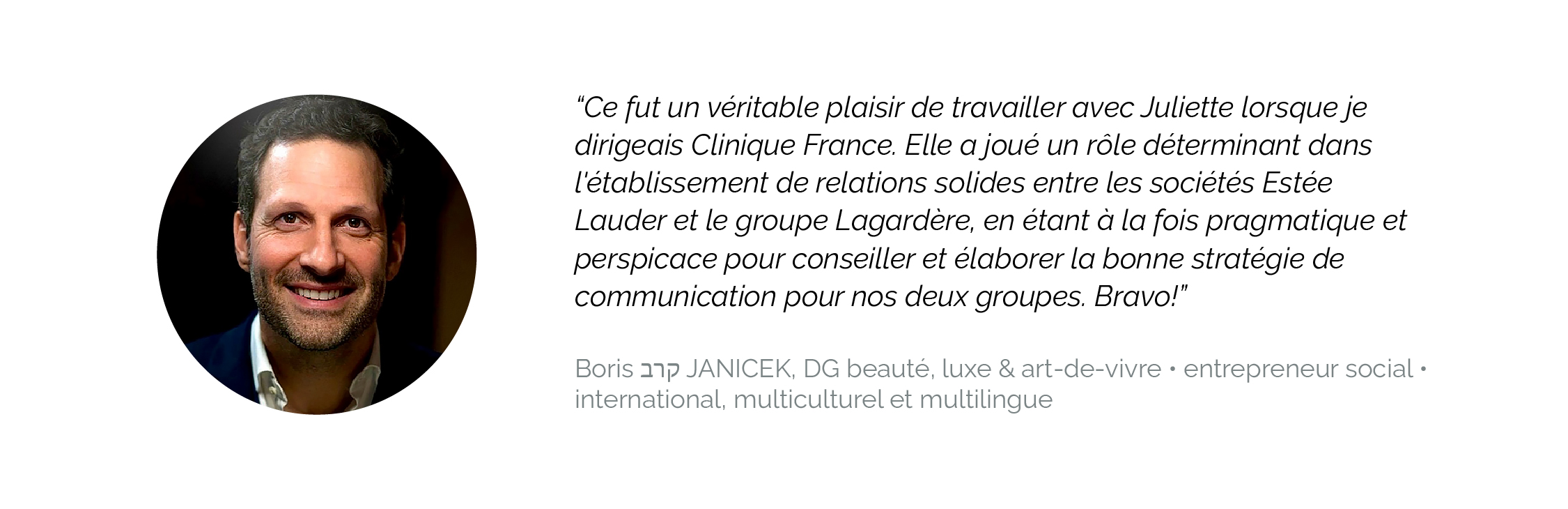 Grâce à son réseau international unique, Juliette Granon offre une vision adaptée et créative, fermement ancrée dans le pouvoir des rencontres humaines. En collaborant avec Juliette Granon Communication, les entreprises obtiennent un positionnement international, une visibilité et un désir pour leur marque, ce qui leur permet de croître, de se développer et de dépasser leurs objectifs.